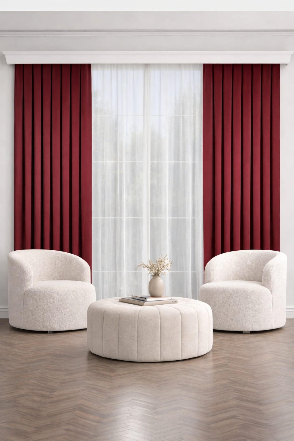 PerdeYap Bordo Ada Fon Perde Tek Kanat 1/3 Sık Pile