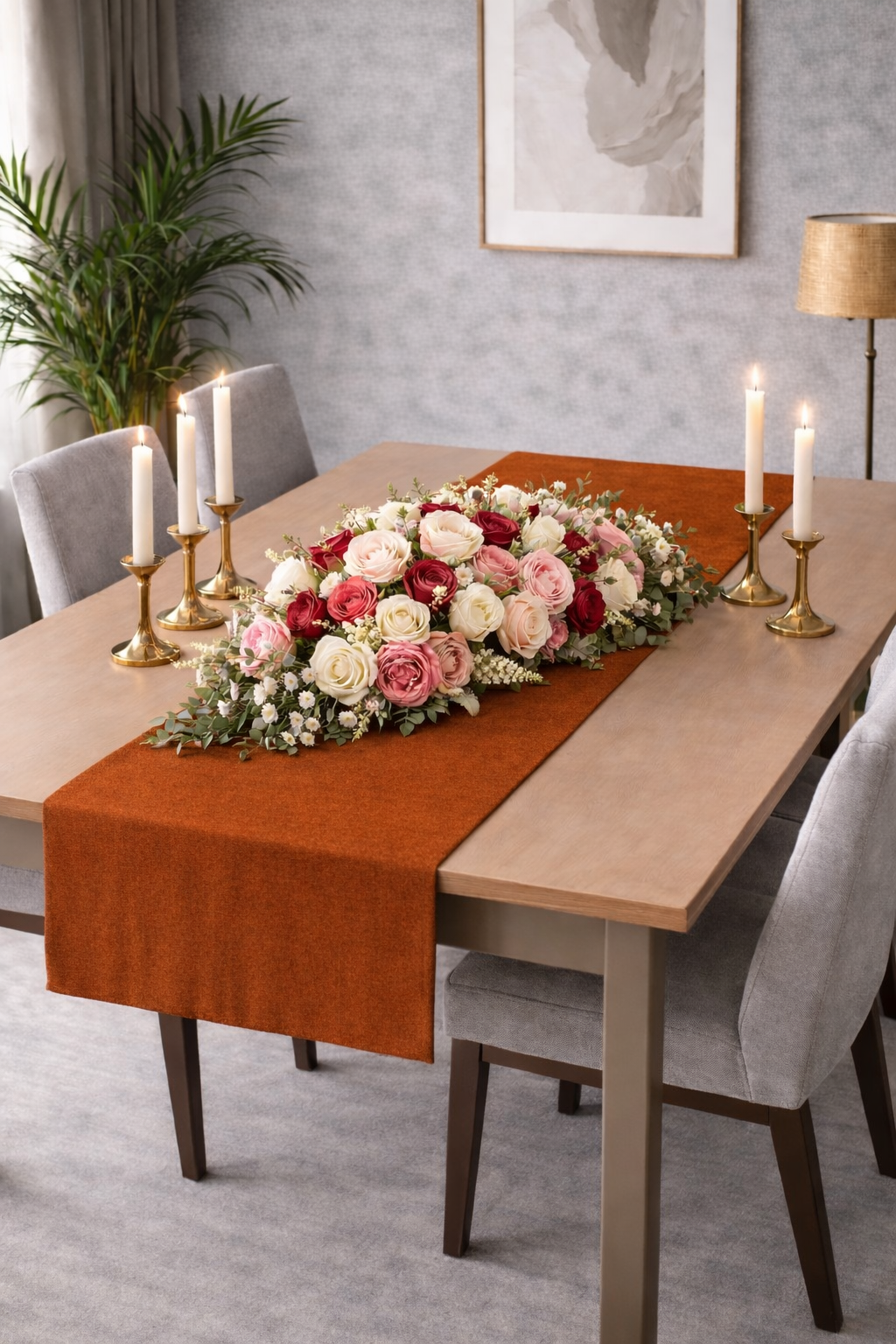 PerdeYap Kadife Dokulu Kiremit Renk Ada Serisi Runner 40 x 140 cm