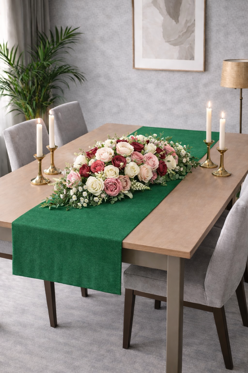 PerdeYap Kadife Dokulu Koyu Yeşil Renk Ada Serisi Runner 40 x 140 cm