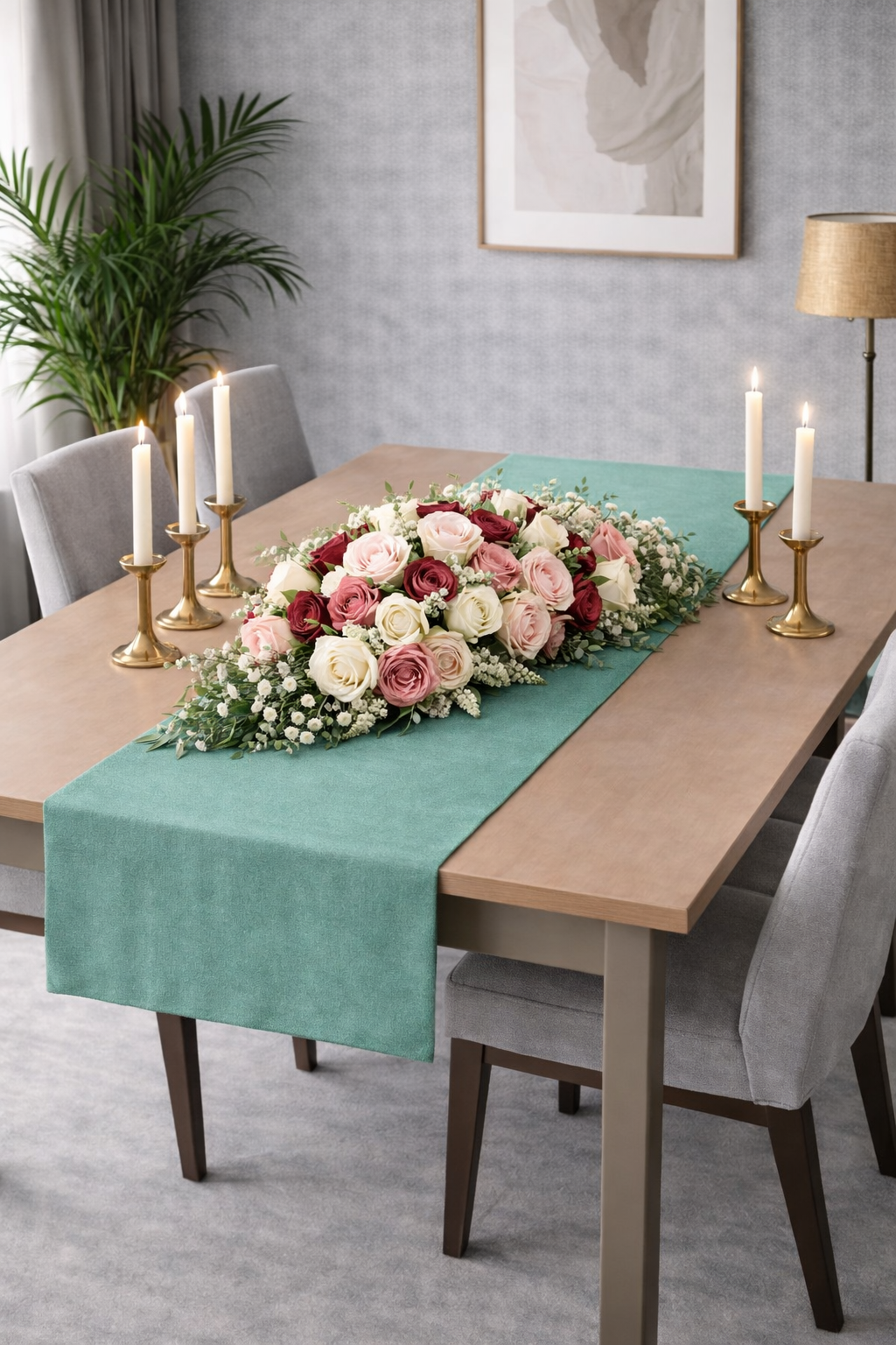PerdeYap Kadife Dokulu Mint Renk Ada Serisi Runner 40 x 140 cm