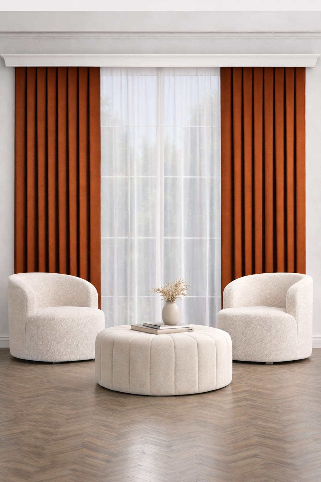 PerdeYap Kiremit Ada Fon Perde Tek Kanat 1/3 Sık Pile