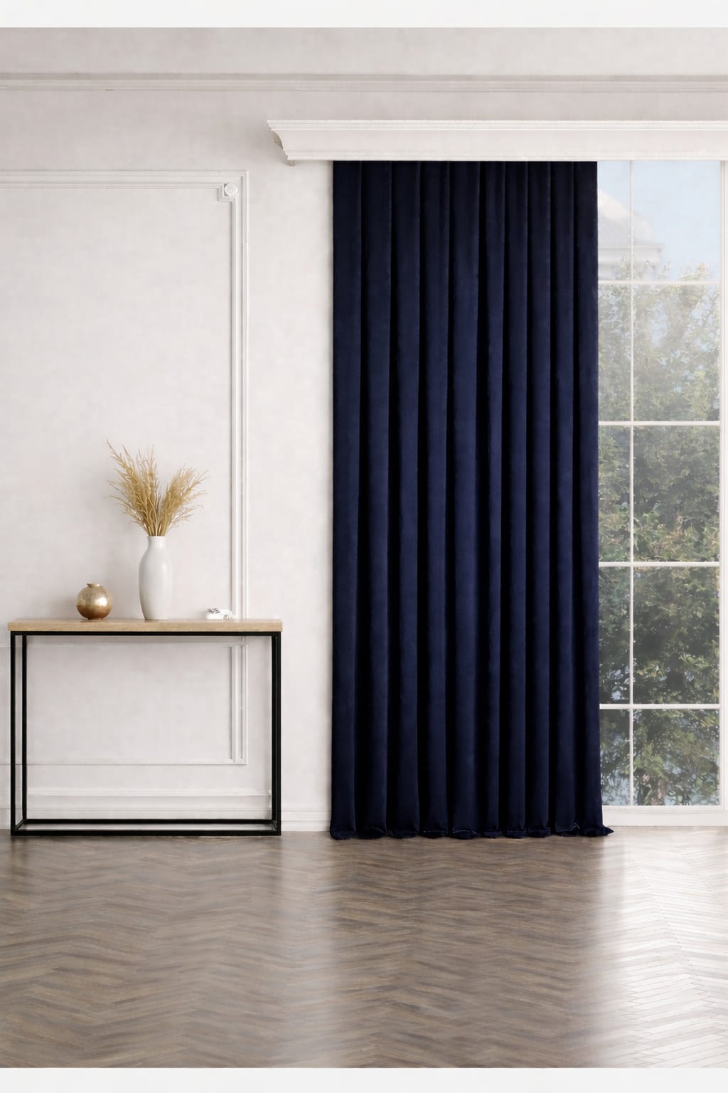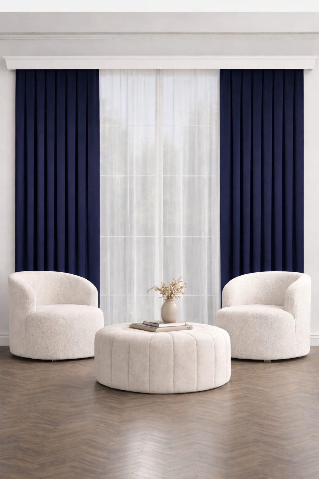 PerdeYap Koyu Lacivert Ada Fon Perde Tek Kanat 1/3 Sık Pile