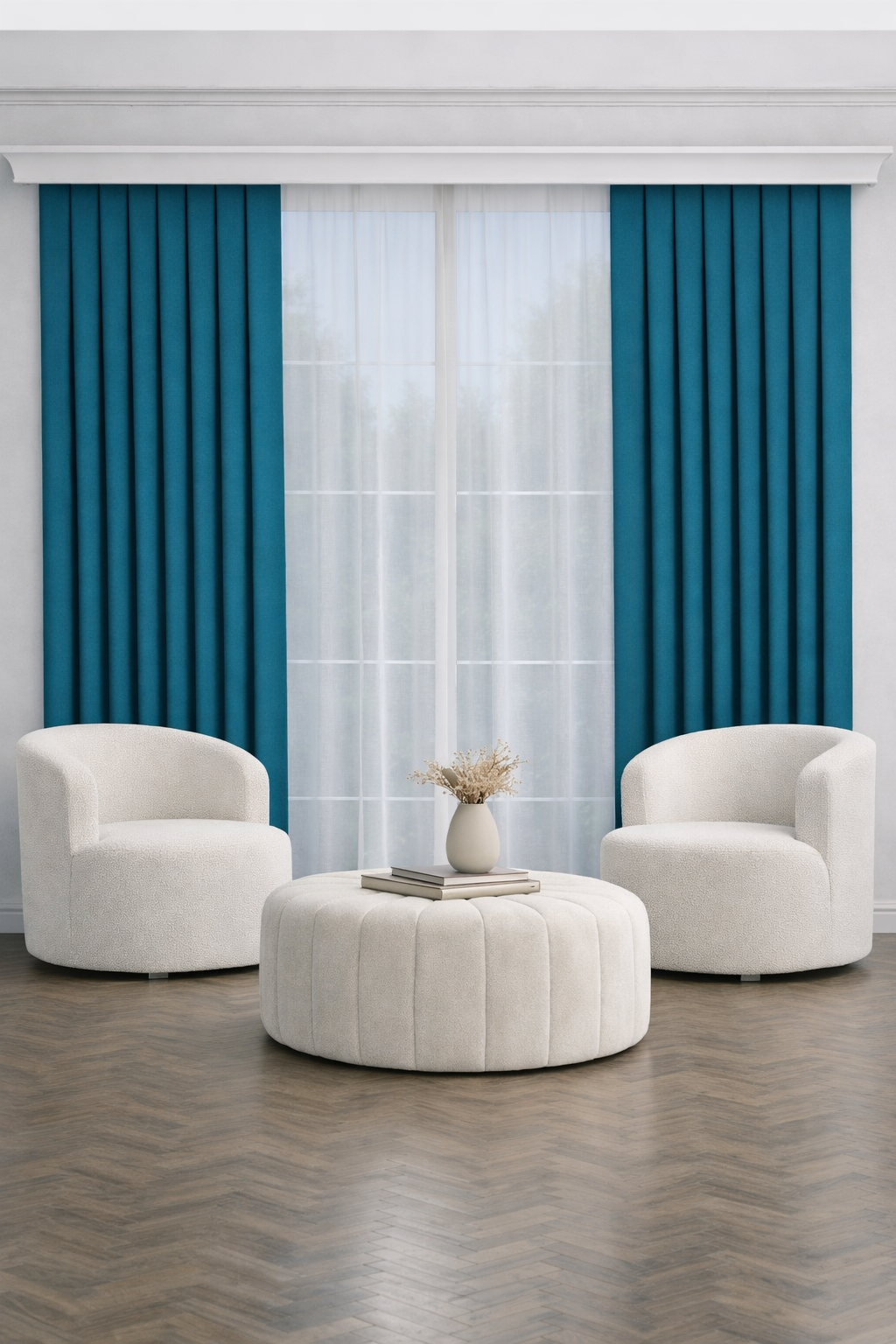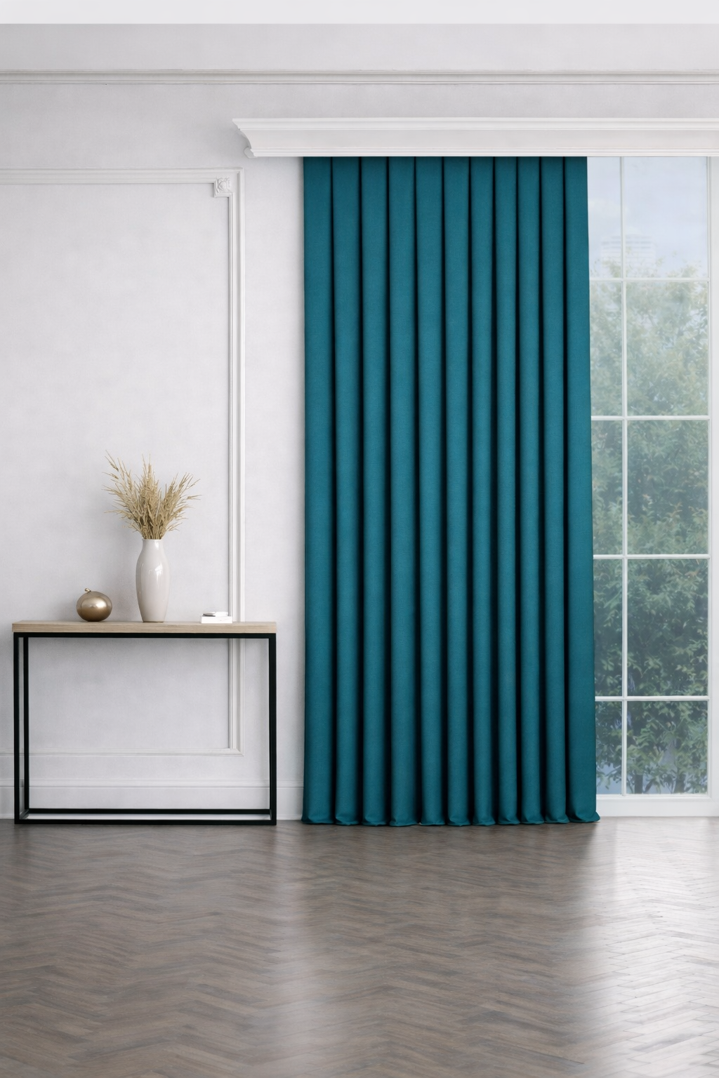 PerdeYap Petrol Ada Fon Perde Tek Kanat 1/3 Sık Pile